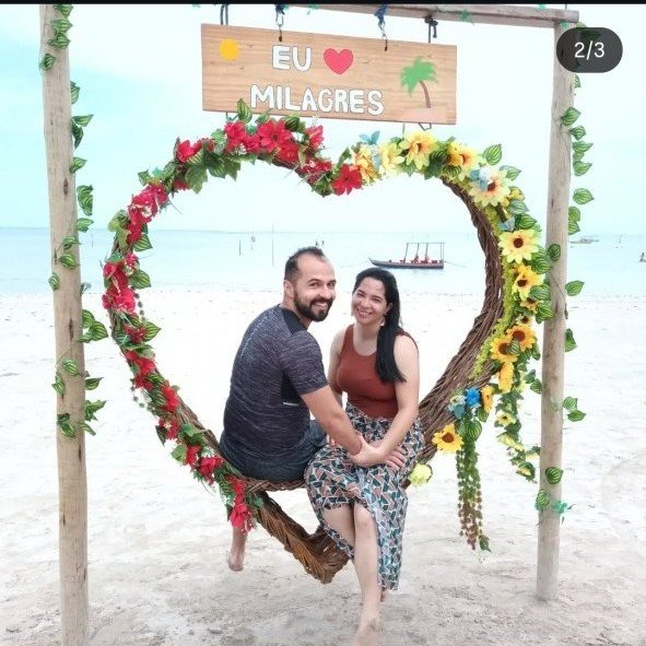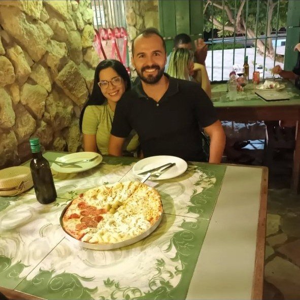 Após 04 (quatro) meses de amizade e 03 (três) meses de caminhada, iniciamos o namoro. Foram quase 03 (três) anos de namoro, e agora vivemos o tempo de noivado - um momento de preparação e oração para o matrimônio. Vamos casar em breve, com a graça de Deus e a intercessão de Nossa Senhora! Viver este momento final, que, na verdade, marca o início de outra trajetória, faz-nos recordar a nossa primeira saída, que foi pra pizzaria, em Arapiraca, no dia em que nos conhecemos, ainda em 2021 - em uma convivência com dois amigos da Comunidade Vida do Shalom.